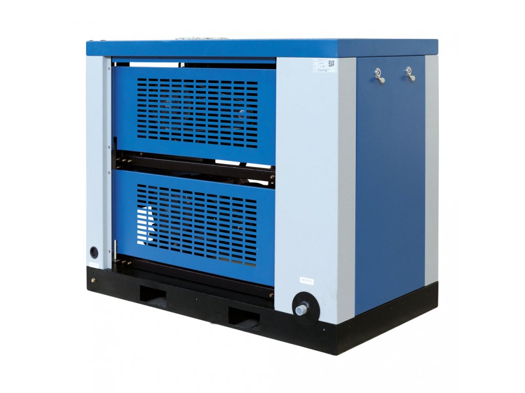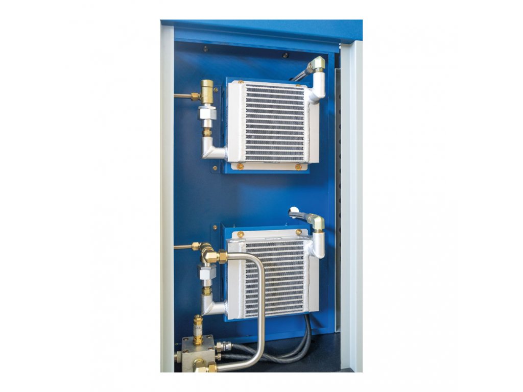 On the output the compressor, the temperature of the compressed air is reduced by means of aftercoolers installed at the output from each airend, in order to maximally reduce the water content created during compression.