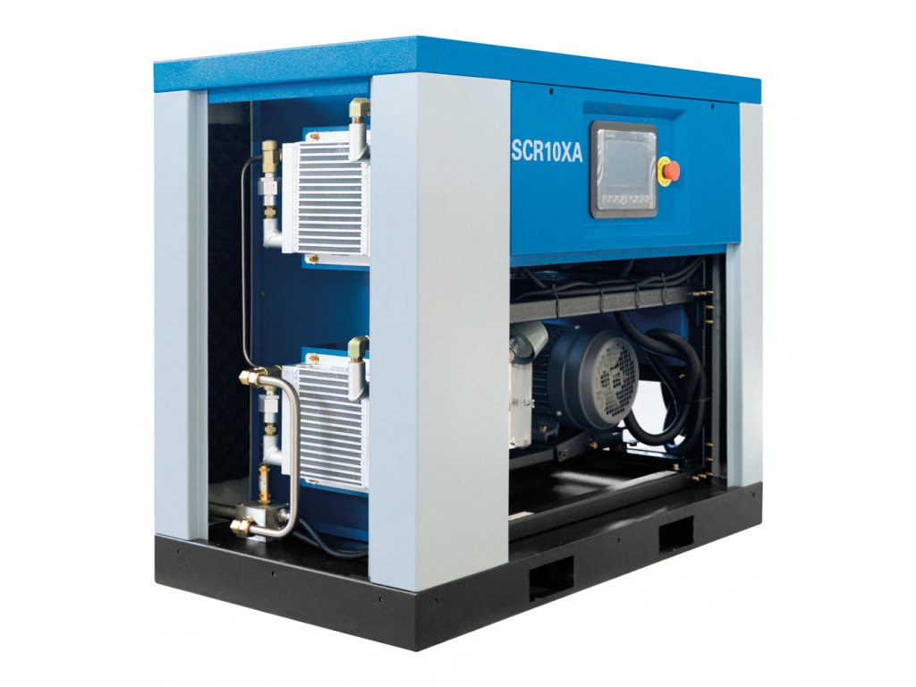 To further reduce the operating temperature, the SCR-XA compressors are equipped with a radial fan on the airend and independent fans that remove heat from the compressor housing.