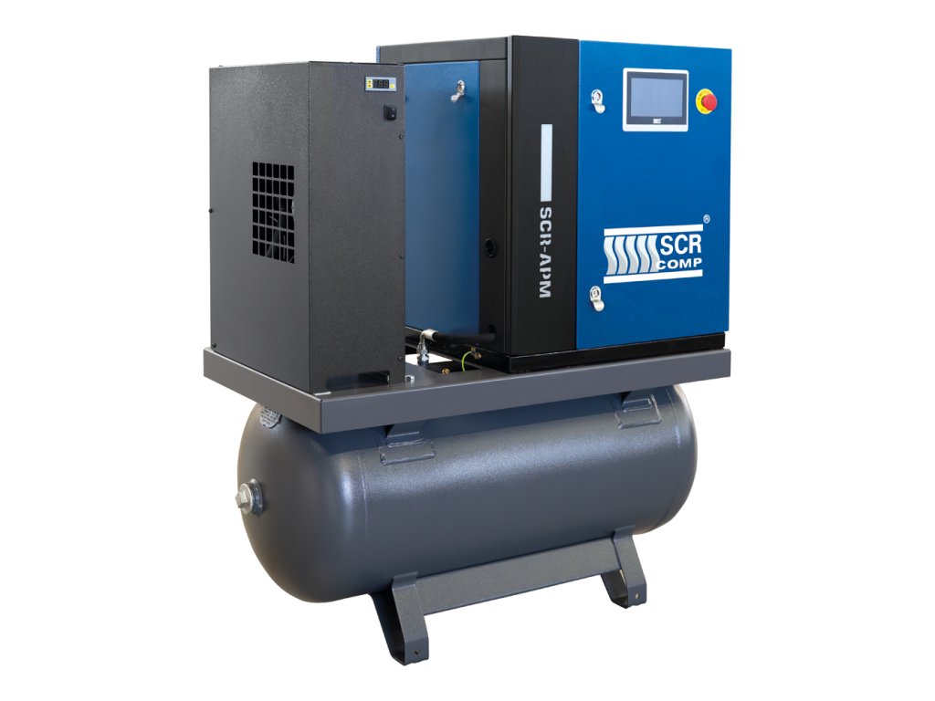 Šroubové kompresory řady SCR-APM Mini nabízíme nejen v samostatném provedení, ale i v praktických sestavách obsahujících kompresor, kondeznační sušičku a tlakovou nádobu o objemu 200 litrů. Tento koncept 3v1 zajišťující jak výrobu, tak i úpravu stlačeného vzduchu usnadňuje do maximální možné míry instalaci, šetří místem a poskytuje velmi kvalitní vzduch pro napájené přístroje a technologie.