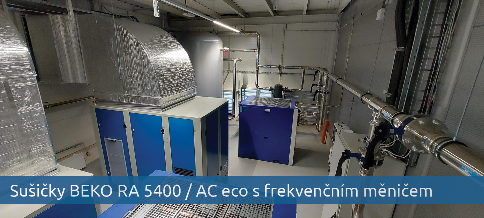 Pro odstranění vlhkosti ze stlačeného vzduchu byly instalovány sušičky BEKO RA 5400 / AC eco s teplotou rosného bodu +3 °C. Díky frekvenčnímu měniči dokážou tyto sušičky reagovat na aktuální spotřebu vzduchu a udržují stabilní rosný bod bez zbytečného energetického zatížení. Tímto způsobem byla snížena spotřeba elektrické energie o dalších několik důležitých procent.